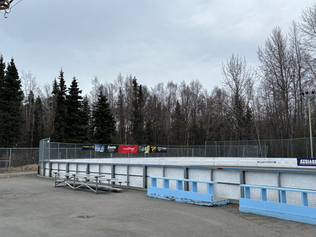 The courts were hockey rinks in the winter. Now void of ice and ready for warmer sports.