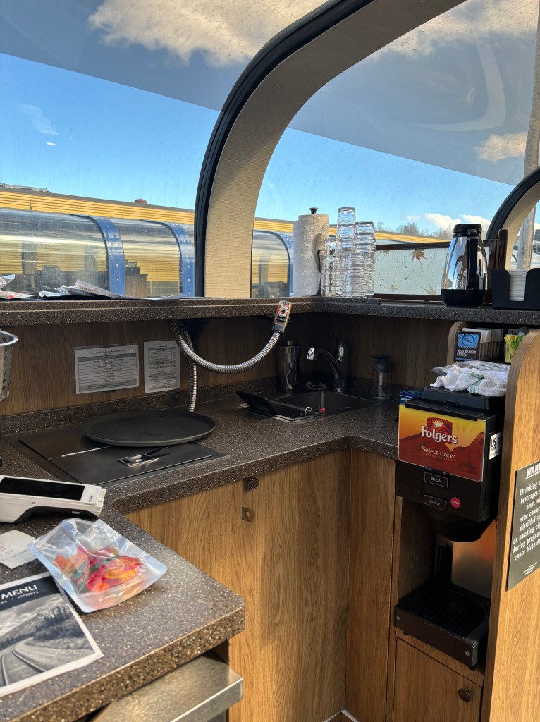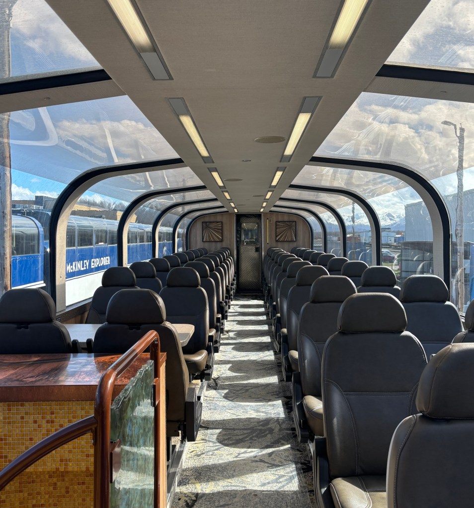 Next we were treated to breakfast on the train, allowing for the servers and cooks to practice. I enjoyed a classic breakfast of potatoes, scrambled eggs and bacon. I avoided the reindeer sausage, which is a main goal for me while here in Alaska.