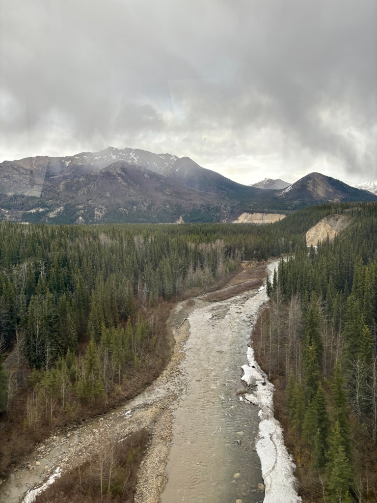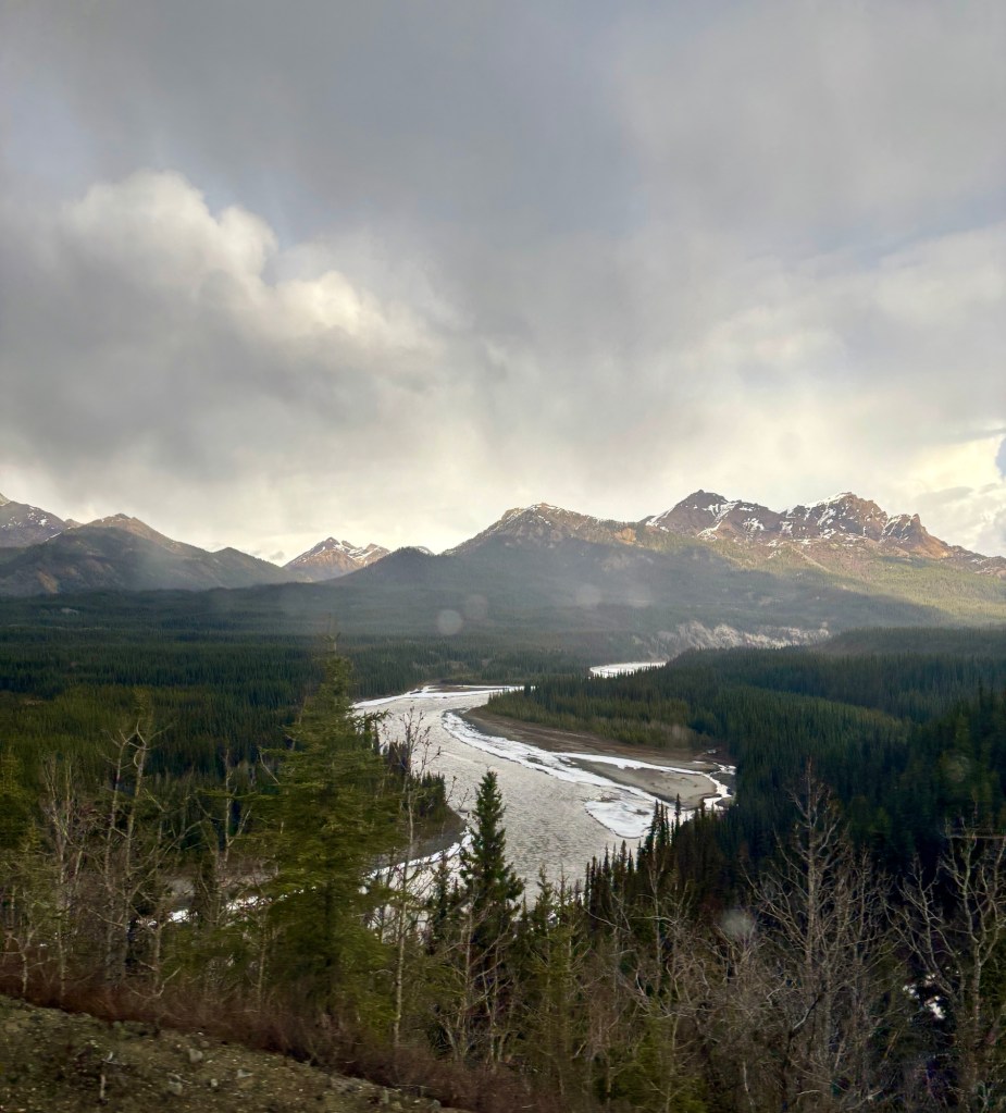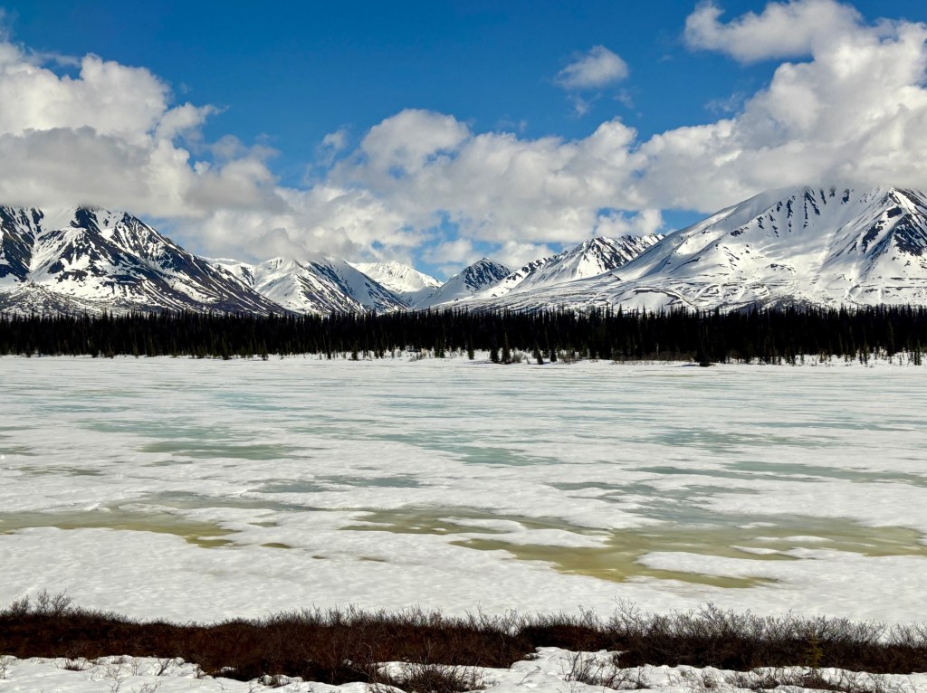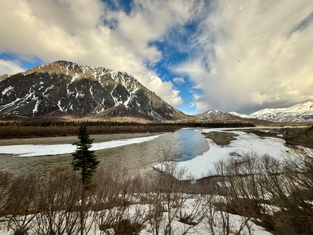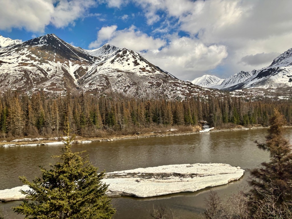 The thawing rivers with massive chunks of ice. Piled up in places. At times smaller pieces floating down the river. Some of the lakes and streams are glacially fed, mixing a turquoise hue (from the glacial silt) with the waters. The views change as we weave our way up the mountain.