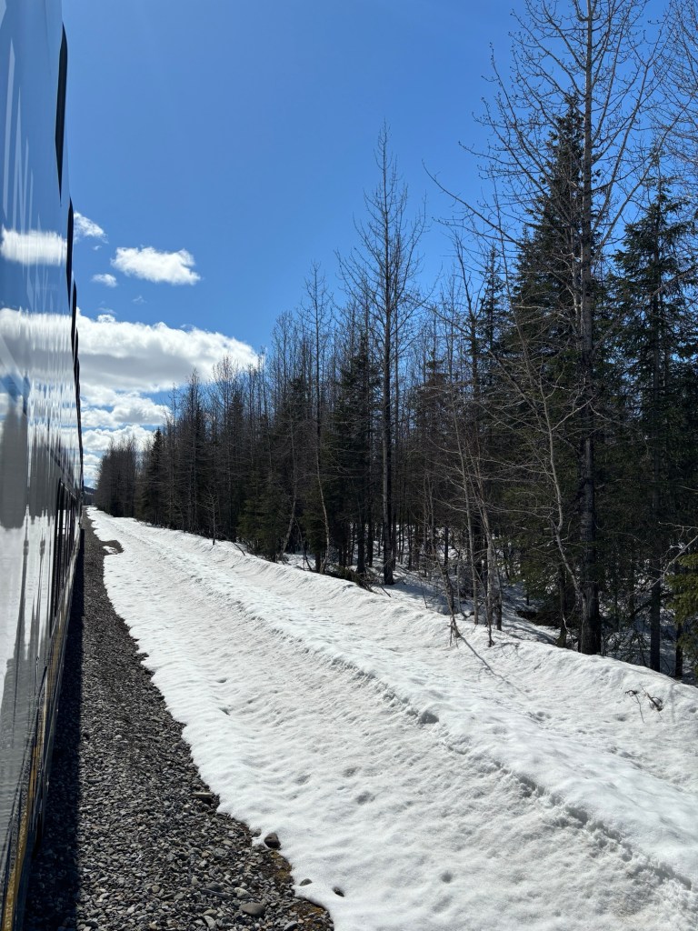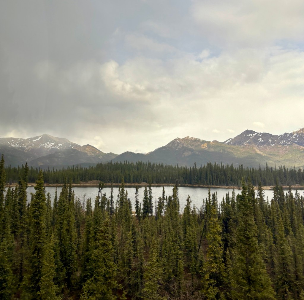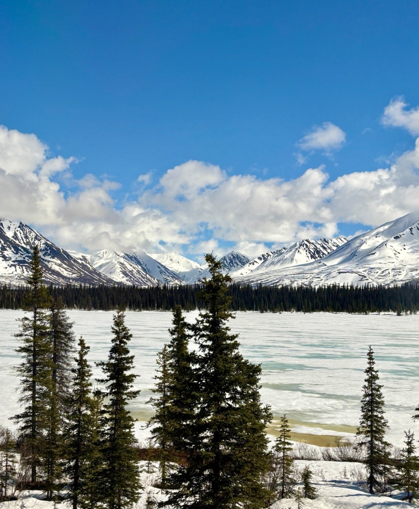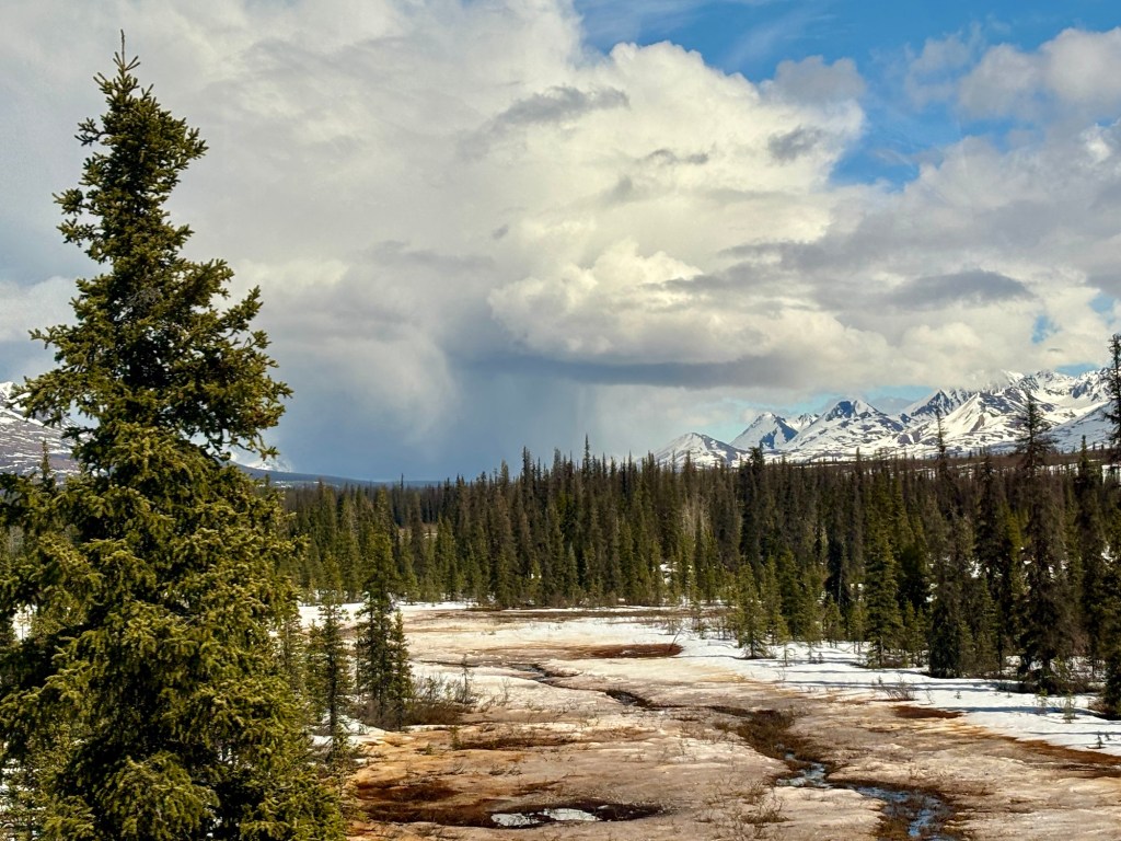 The thawing rivers with massive chunks of ice. Piled up in places. At times smaller pieces floating down the river. Some of the lakes and streams are glacially fed, mixing a turquoise hue (from the glacial silt) with the waters. The views change as we weave our way up the mountain.