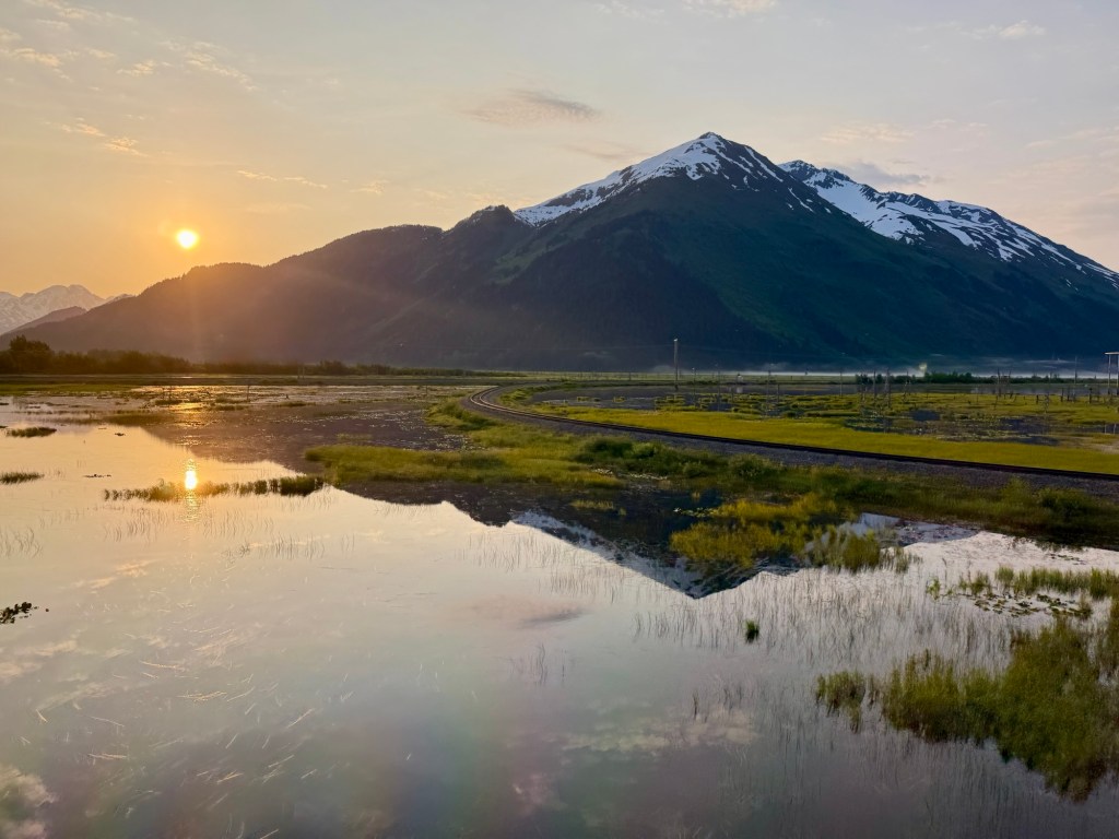 This picture was taken before the tunnel. the sun rising from its not really completely set position. As we are nearing the summer solstice. Sunset in Anchorage is currently 11:42pm and sunrise is 4:20am.