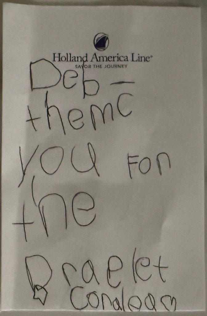 They each wrote me a note and drew me a picture. When the little boy gave me his note, I knelt down at his level and he stared at me with that happy and proud smile. It was adorable 🥰.